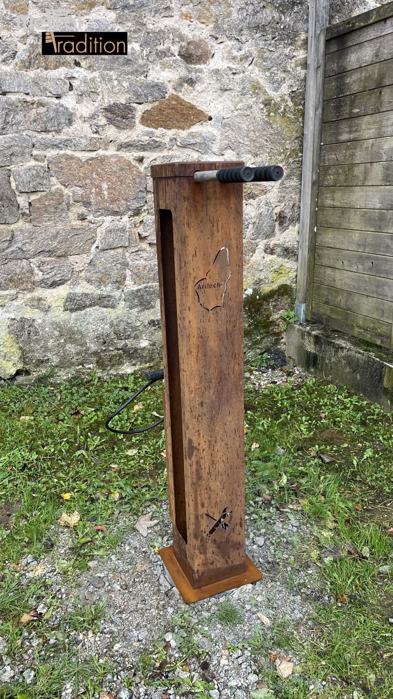 Dans sa livrée alliage CORTEN et touche d’INOX